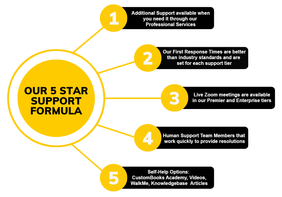 CustomBooks™ can allow your business to scale using our prebuilt customizations as well as tailored customizations specific to your business needs and processes.